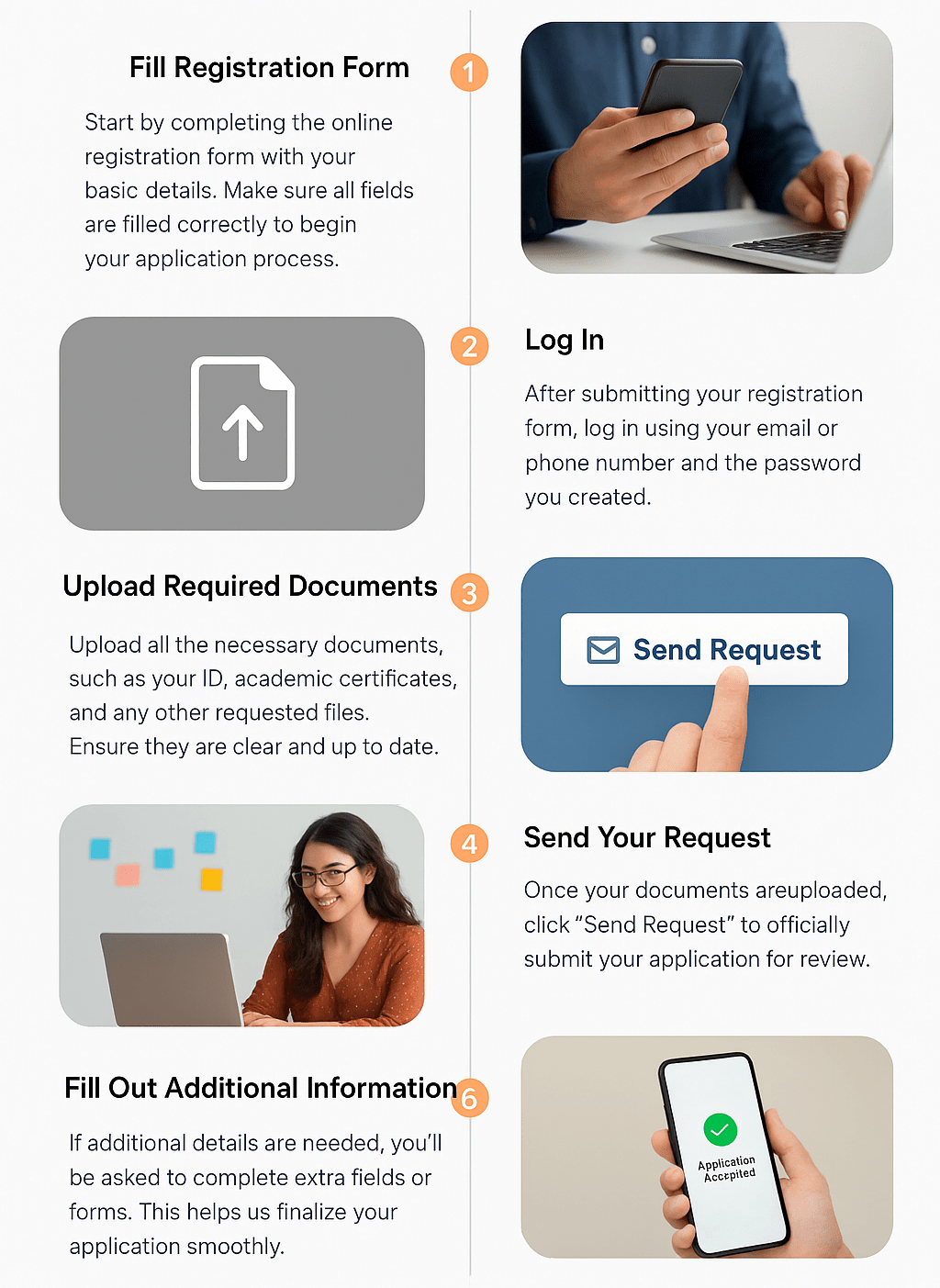 You can submit your application online. You will be asked to upload you passport, latest academic transcripts, and any English language qualification you may have so please have these ready. Plus, please read the information below for more details before you start your online application.